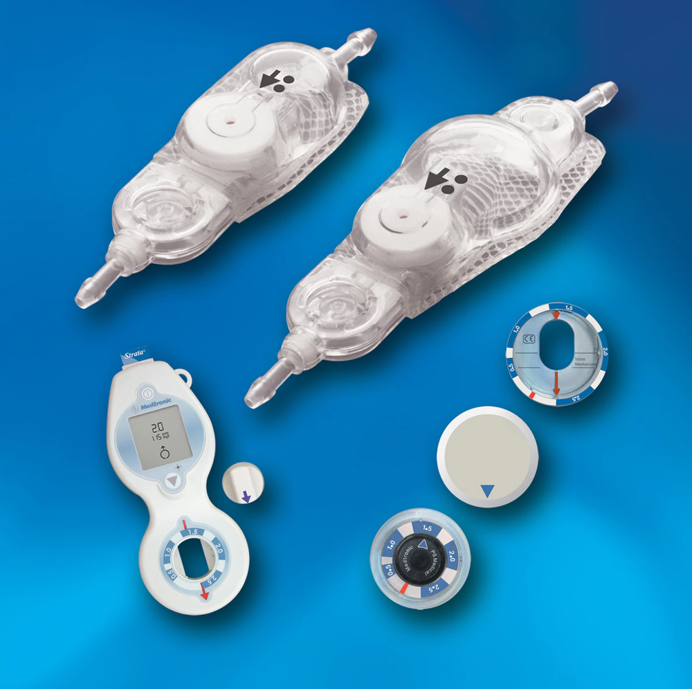 information on adjustable pressure Strata shunts used for treating hydrocephalus in children and adults.
