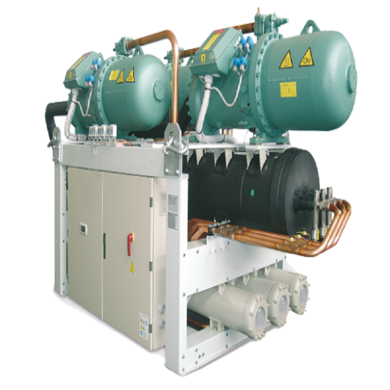 TCHVZ is a single, dual or triple-circuit chiller producing chilled water and charged with R134a gas. The semi-hermetic twin screw compressor comes with star-delta or part winding start (depending on models) and is complete with integral protection, casing heater and refrigerant gas outlet piping shut-off valve. Electronic expansion valve is standard on all models. Dry expansion shell and tube exchanger with counterflow heat exchange is complete with closed cell polyurethane foam rubber insulation, water flow differential pressure switch and victaulic fittings. Shell and tube condenser is complete with safety valve, and service valve on the high-pressure refrigerant gas circuit. It is available in 2 versions: Standard and Soundproofed version.