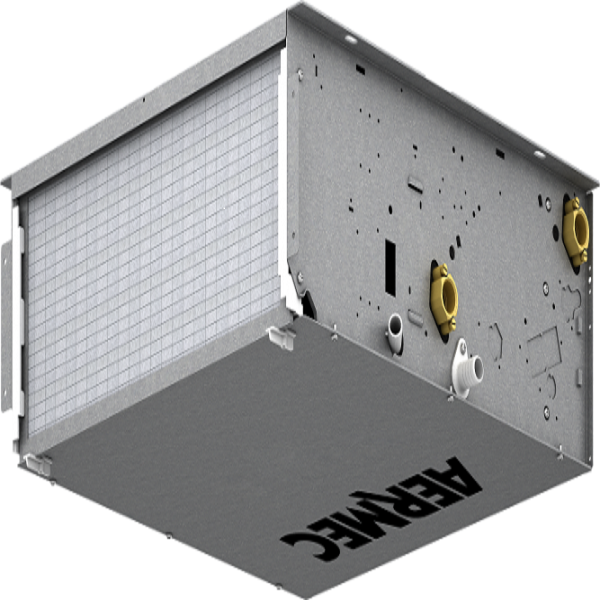 The units of the VED series are fan coils which are suitable for air conditioning. Available in various versions, they can be installed either vertically or horizontally and come with multi-speed on/off motors or inverter motors. They have anti-static plastic centrifugal fans with an impeller equipped with inspectionable airfoil and scroll fins. This feature gives the machine a net reduction in the noise emission level, as well as a reduction in the motor's electrical consumption compared to traditional fans with a metal structure. The VED units come with a class G3 air filter as standard, and can also be equipped with multiple accessories and can be integrated into the centralised VMF - Aermec hydronic management system.
