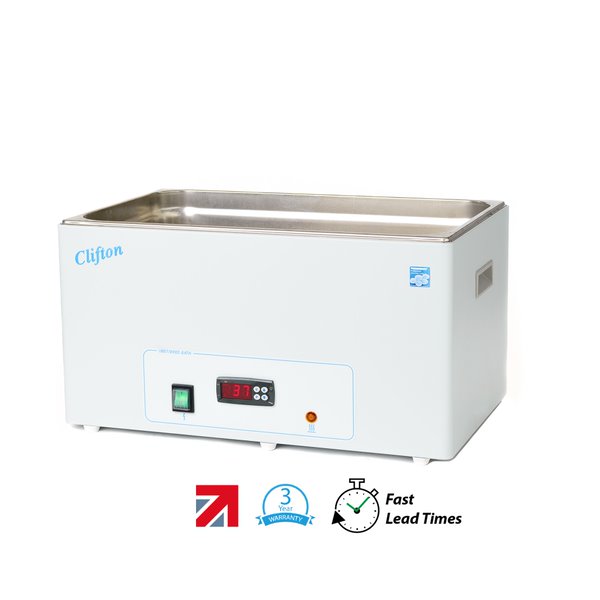 • Clifton unstirred water baths are designed for immersion of flasks/bottles/racks in a highly stable temperature environment throughout the water bath.