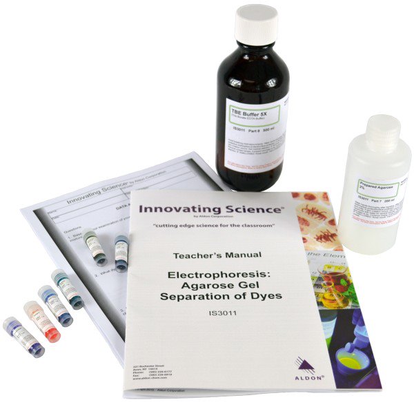 Introduce your students to this valuable separation science in a safe and colorful manner. Unlike DNA and other molecules which cannot be seen during electrophoresis, this activity uses dyes that can be observed during the actual procedure, providing visual reinforcement of the forces driving molecular movement and separation in the electrophoresis process. Kit contains enough materials to run ten 20ml agarose gels (actual number of runs may vary based on your equipment.)