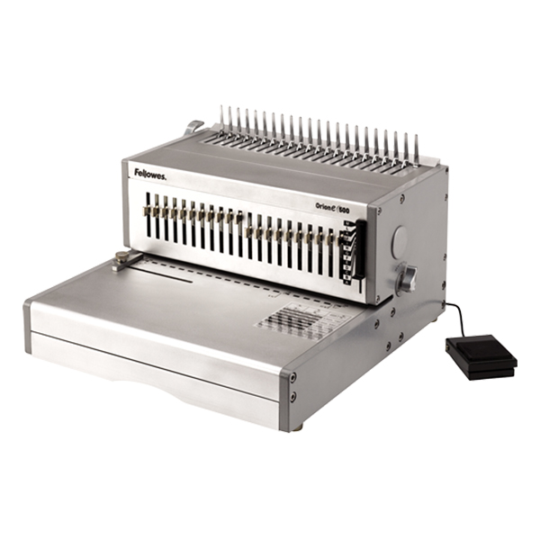 • Heavy Duty Use for Binding up to 500 Sheets • Electric punching up to 30 sheets (80gsm) • Maximum comb size:- 50mm • 100% Metal Construction • Selectable Pins & Horizontal punching • Removable punch metal lever with revolving grip • Gage for Comb & document sizing • Articulated punching bar for effortless punching • Adjustable Metal Edge Guide suits all paper sizes • 5 position Back margin adjustment allows easy page turning on larger documents • Adjustable comb opening for ease of document assembly • Pedal Activated punch cycle easily • Chip tray • Releasable dies allow A5/A6 document punching • 1 year Warranty