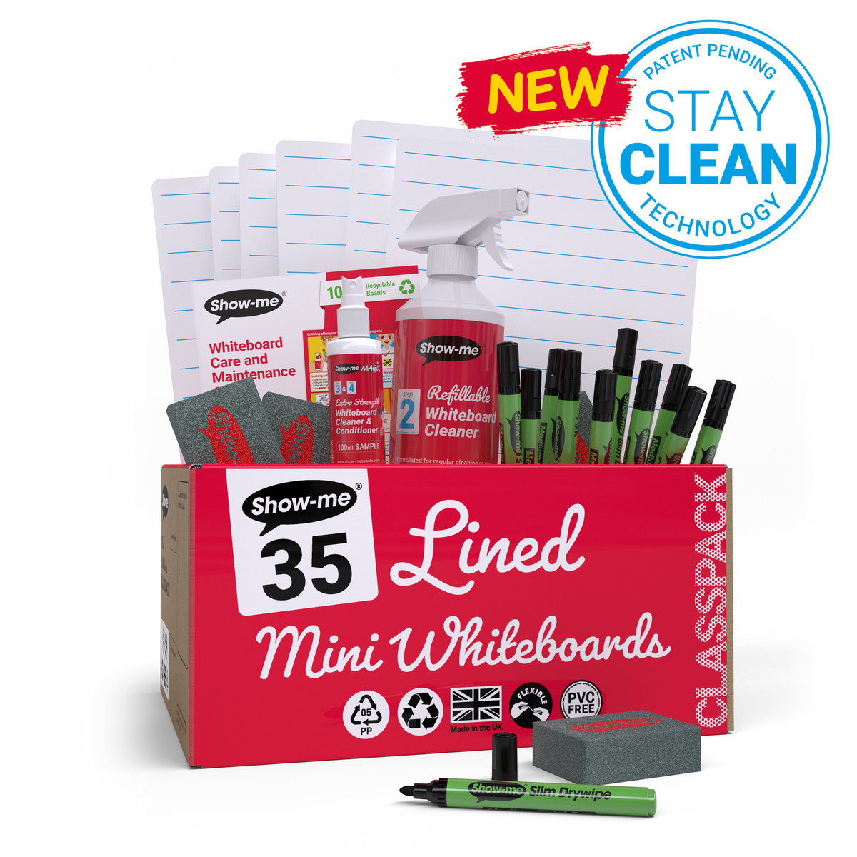 Classpack contains 35 Sets of Lined boards, pens and erasers