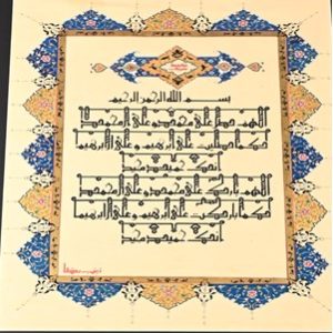 الوصف بالعربية: "اللهم صلّ على محمد" – صلاة نبوية بخط الكوفي الفاطمي
