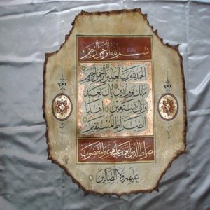 الوصف بالعربية: "سورة الشرح" – بشرى الرحمة بخط الديواني وخط الإجازة
