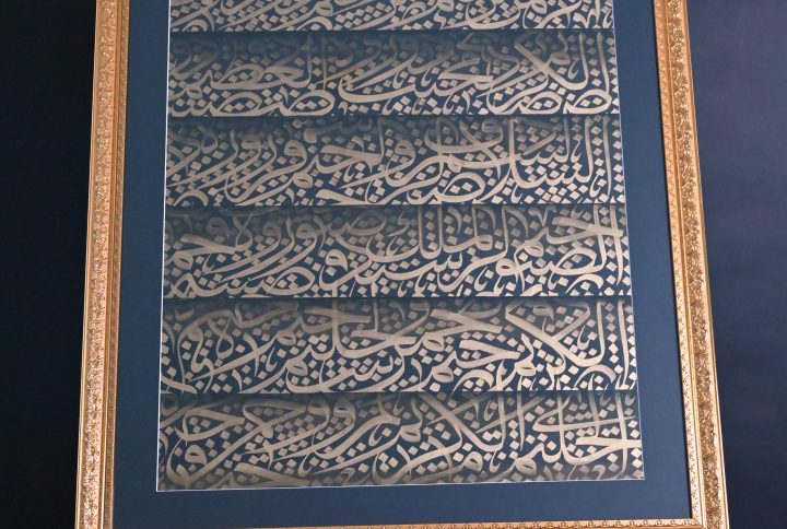 Crafted on deep jet-black paper, this piece is illuminated using gold dust-infused colors, creating a subtle shimmer that evokes reverence and awe. A refined expression of faith and elegance, perfect for both contemporary and traditional interiors.