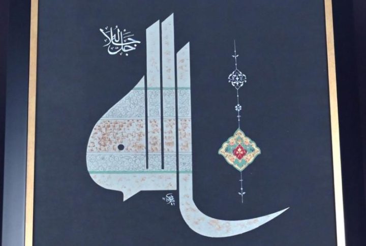 The sacred Name of Allah is presented in a bold and minimalist Khatt Al-Kufi, emphasizing timeless beauty and spiritual power.